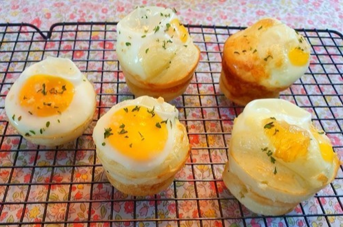 - 그 위에 계란 1개씩 각각 깨어 넣고 포크를 이용해서 노른자를 터트려 줍니다.(안 터트리면 익으면서 터집니다)