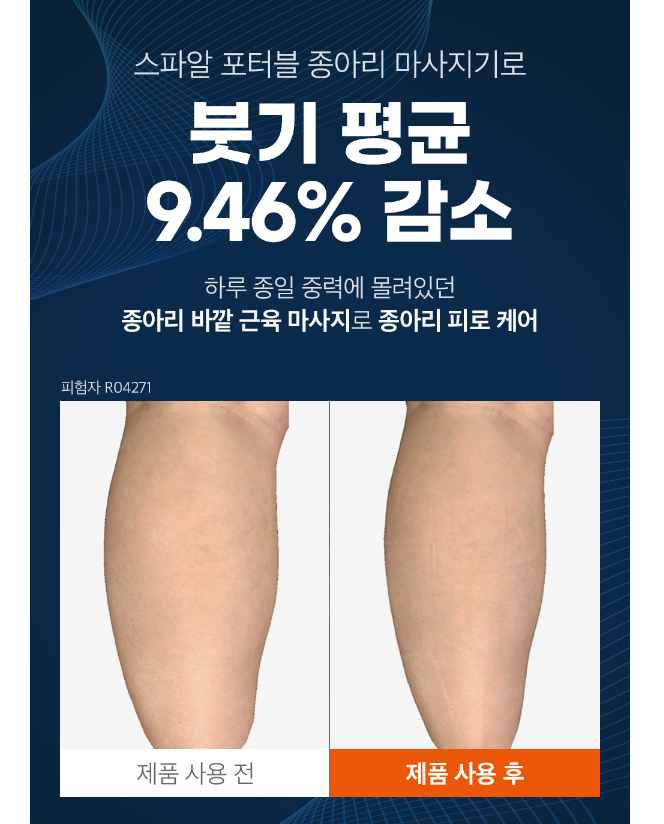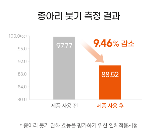하루 15분 사용으로 붓기가 완화되고 종아리 둘레가 감소된 사실이 입증되었습니다.