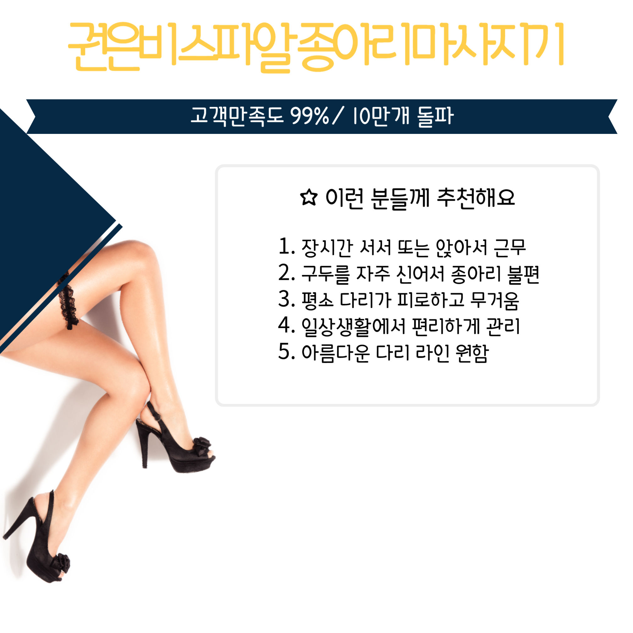 종아리를 꽈악 조이면서 손으로 주무르는 듯이 움직여주어 굳어있던 종아리 알 해결할 수 있는 아이템! 최근 권은비 마사지기로도 유명하기로 소문났죠? 고객만족도 99%로 역대 최대 기록경신으로 10만 개 판매 돌파한 스파알 포터블 종아리 마사지기와 종아리 마사지가 중요한 이유까지 알아보도록 하겠습니다.