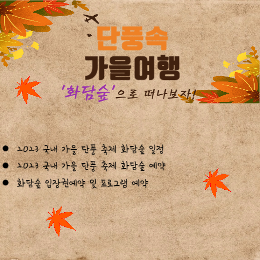 ▼ 아래 클릭 시 화담숲 가을 단풍 축제 입장권 할인정보를 확인하실 수 있습니다 ▼