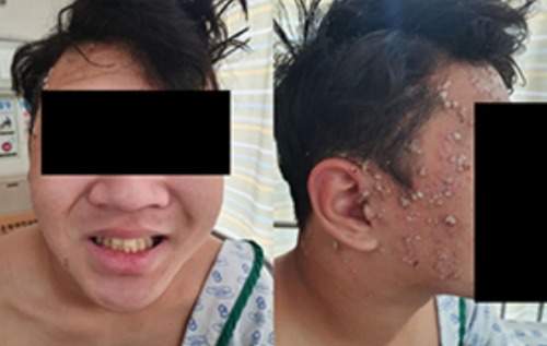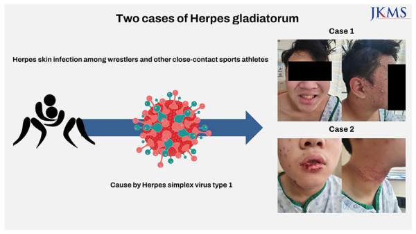검투사포진을 최초 보고한 충북대병원 의료진은 확진된 2명 모두 같은 학교에 다니는 15살 레슬링 선수라고 하였습니다. 첫 번째 환자의 경우 오른쪽 얼굴과 귓바퀴부위에 병변이 집중적으로 나타나 치료 초기에는 대상포진으로 오해했다고 밝혔고, 두 번째 환자의 경우에는 오른쪽 팔부터 물집이 시작되 얼굴, 목, 입술로 확산된 첫 번째 환자와는 조금 다른 모습을 보였다고 하였습니다.