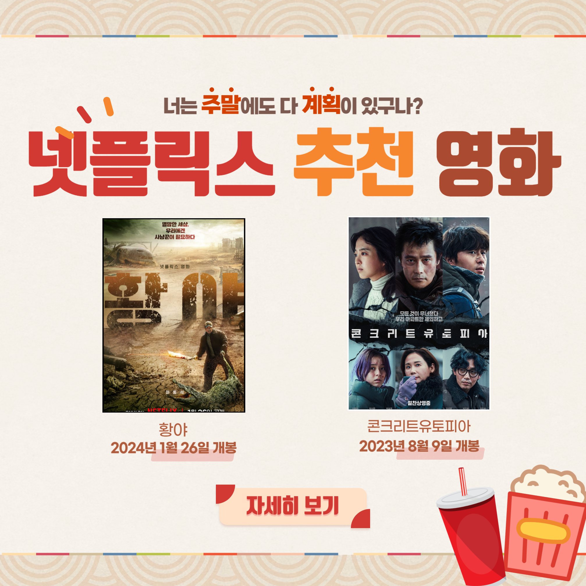 지금까지 넷플릭스 영화 <황야>에 대해서 알아보았습니다. 넷플릭스 첫 주연을 맡은 마동석 영화 주말에 보시는 건 어떨까요? 영화 콘크리트 유토피아를 재밌게 보신 분들이라면 재미있게 볼 수 있을 것 같습니다.
