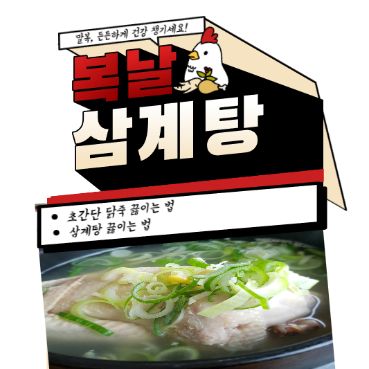 말복은 초복, 중복, 말복 삼복 가운데 마지막에 드는 복날입니다. 말복에는 무더운 날씨 속에서 건강을 지키기 위해 대표적인 보양식으로 삼계탕을 먹으면서 더위를 이겨냈습니다. 간단하게 냄비에 삼계탕 끓이는 법과 초간단 닭죽 끓이는 법에 대해서 알려드릴 테니, 무더운 날씨에 땀도 많이 흘리고 기력도 떨어지셨다면, 보양식으로 삼계탕을 끓여서 드셔보시기 바랍니다.