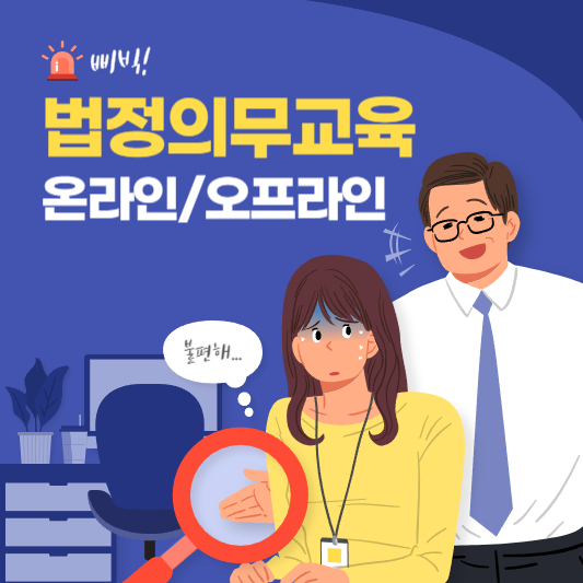 법정필수교육은 상시 근로자 3명 이상 사업장에서 연 1회 이상 필수로 받아야 하는 의무교육으로 교육을 미실시 할 경우, 과태료 또는 행정처분을 받을 수 있습니다. 2023년 9월 1일 ~ 9월 15일까지 온라인/오프라인 모두 신청이 가능하오니, 잊지 말고 신청하여 과태료 받으시는 일은 없도록 하시기 바랍니다.