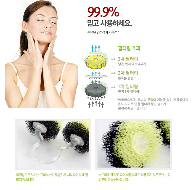 일반 마스크를 착용할 경우에는 마스크와 얼굴 빈틈사이로 먼지들이 침투될 수 있습니다. 아래 버튼을 누르면 꽃가루 마스크(에코마스크)를 확인하실 수 있습니다.