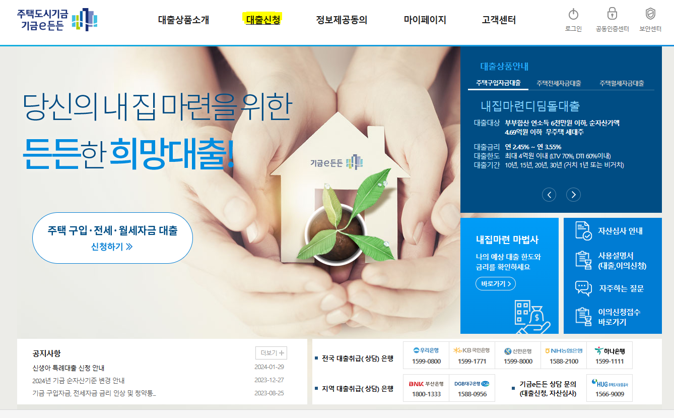 먼저, 온라인 신청의 경우 기금 e 든든 홈페이지에서 신청할 수 있습니다. 오프라인 신청의 경우(방문신청), 신청 은행으로는 우리은행, 국민은행, 신한은행, 농협은행, 하나은행이 있습니다. 온라인 신청을 원하시는 경우, 아래 버튼을 이용하시면 신생아 특례대출 신청을 바로 진행하실 수 있습니다.