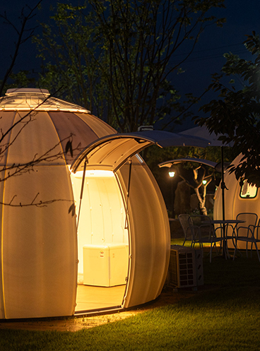 글램핑포엠은 2021년 10월 신규오픈한, 펜던트모양을 본뜬 럭셔리한 구조로 테라스에서 개별 바비큐가 가능한 복충구조의 가족 펜던트 카바나입니다.