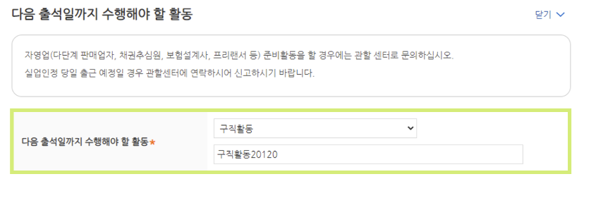 - 구직활동 외 활동사항이 있을 경우 체크하시고 필수 항목을 입력합니다.