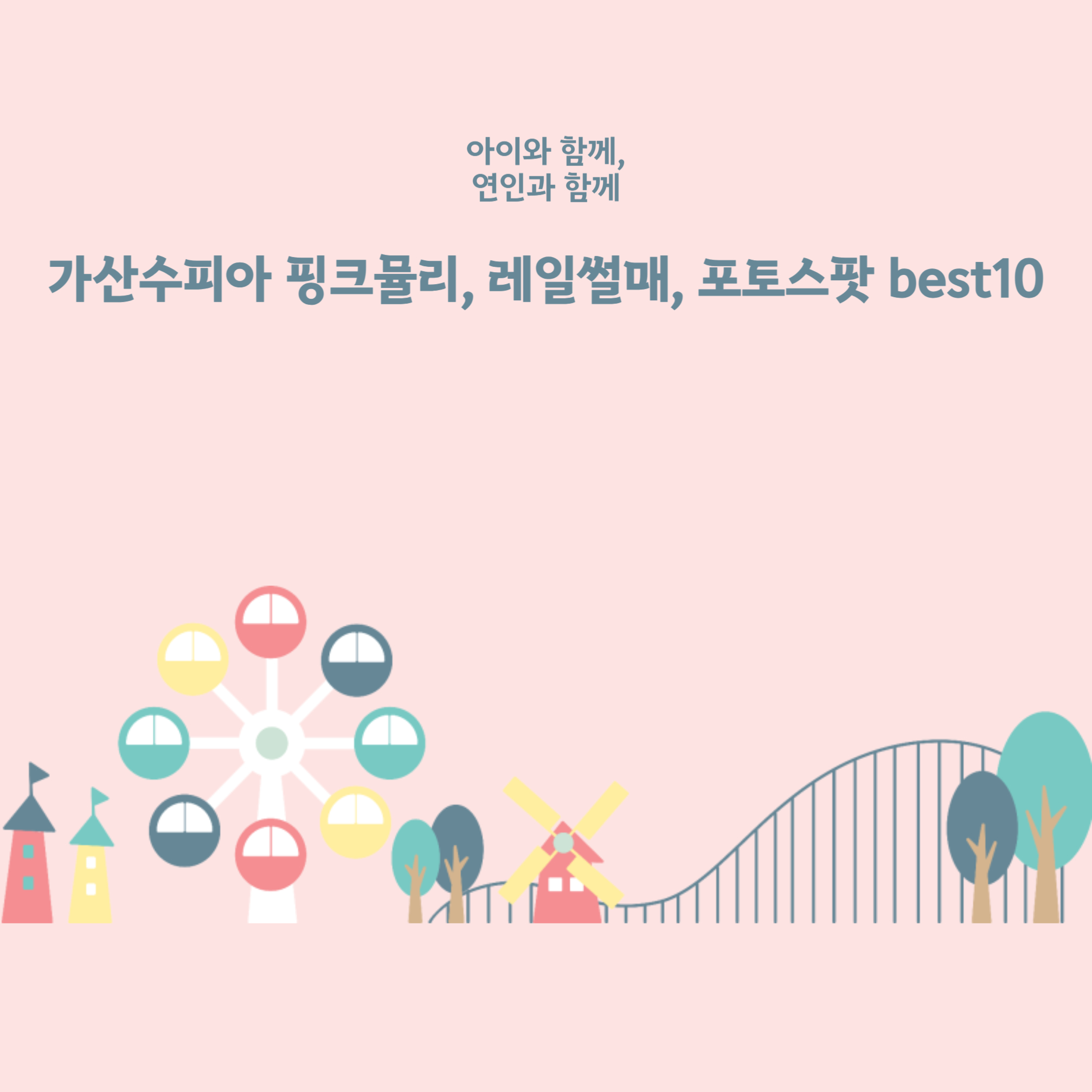 가을 햇살을 맞으며 나들이하기 좋은 시기입니다. 핑크뮬리를 볼 수 있는 곳이 많지만 전국 명소를 꼽을 때, 핑크뮬리로드와 언덕으로 유명한 가산수피아를 소개해드렸습니다. 핑크뮬리뿐만 아니라 레일썰매, 공룡뜰, 미네르바(꽃/공예체험장) 등 즐길거리가 많아서 아이와 함께 가기에도 좋은 장소입니다.