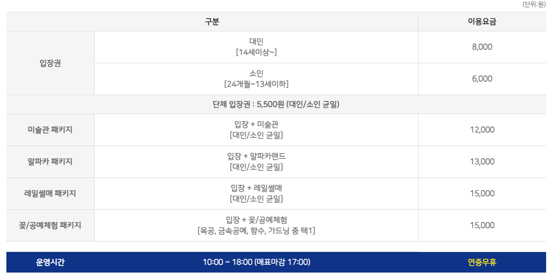공룡뜰, 미술관, 미네르바 꽃/공예체험장, 알파카랜드, 레일썰매