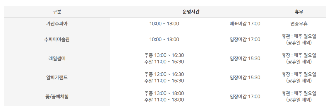 - 가산수피아 이용요금 및 운영시간