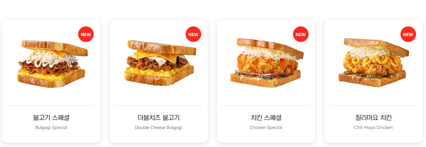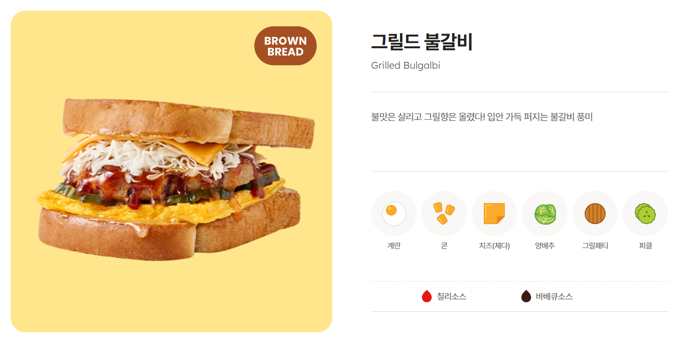 - 오리지널 불고기와 2가지 치즈로 풍성함> 더블치즈 불고기