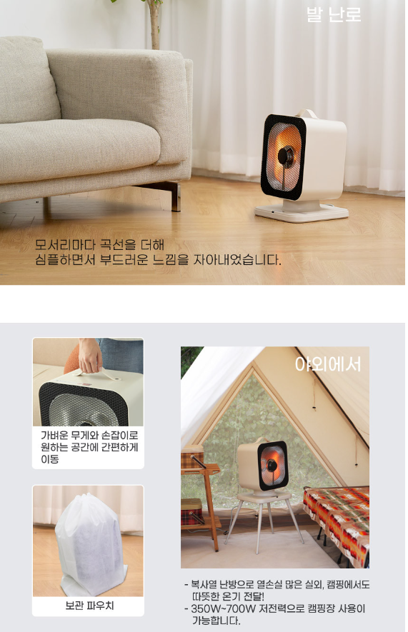 - 프리미엄 12인치 알루미늄 반사판:강력한 열량 발생 + 먼 곳까지 온기 전달