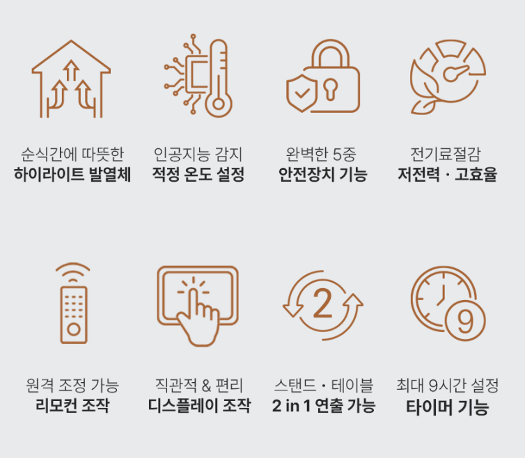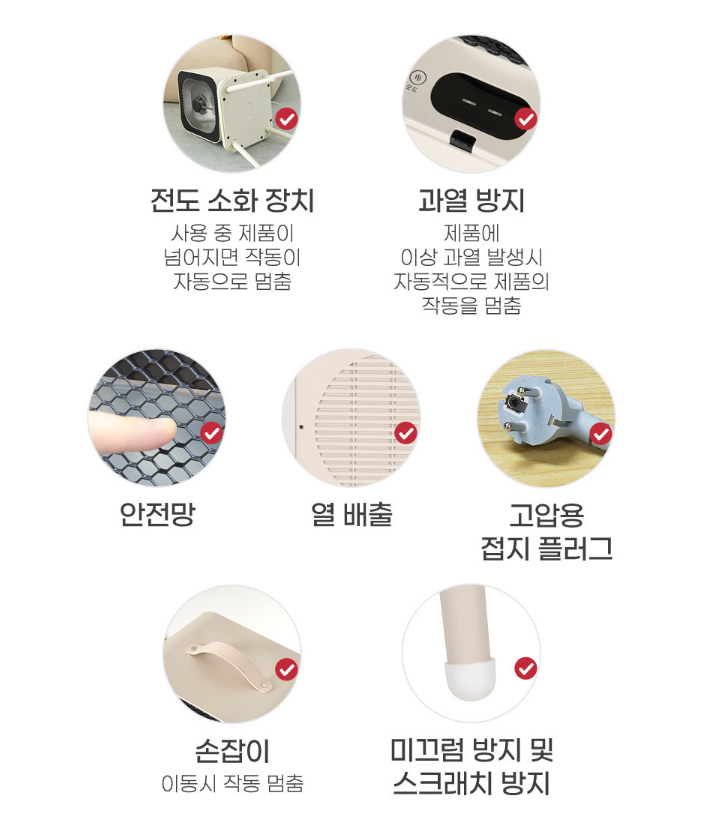 - 전면안전그릴: 발열체로부터 지켜주는 안전 그릴망