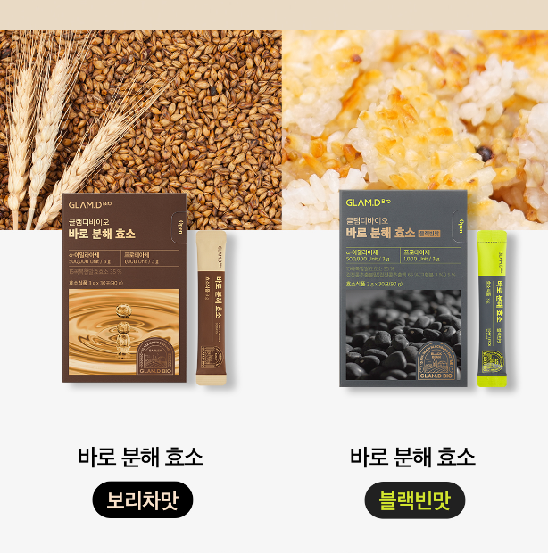 보리의 풍부한 섬유질을 담은 식이섬유 효소인 고소하고 깔끔한 보리차맛과 블랙푸드의 건강을 담은 맛있는 검은콩 효소, 구수하고 진한 누룽지맛 블랙빈맛이 있습니다.
