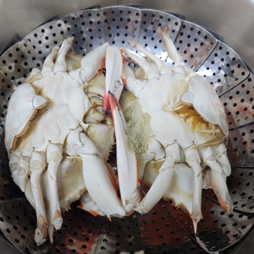 - 찜기에 물을 넣고 끓인 뒤 손질한 꽃게를 넣어줍니다. 꼭 배딱지가 위를 향하게 넣어야 육즙이 빠져나가지 않는다는 점도 참고하시기 바랍니다.