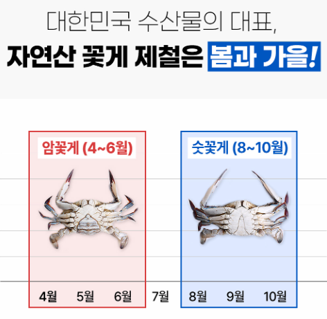 꽃게는 1년에 두 번의 제철을 맞아, 봄에는 암꽃게, 가을에는 숫꽃게가 상품가치가 높고 맛도 좋습니다. 요즘 가을 꽃게가 나오기 시작했는데요, 꽃게 암/숫꽃게 구별법과 꽃게 손질법, 가을 꽃게 찌는 시간 및 요리에 대해서 알려드리겠습니다. 가을 제철인 꽃게, 수확량이 늘어나 저렴하기도 해서 꼭 드시라고 권해드리고 싶습니다.