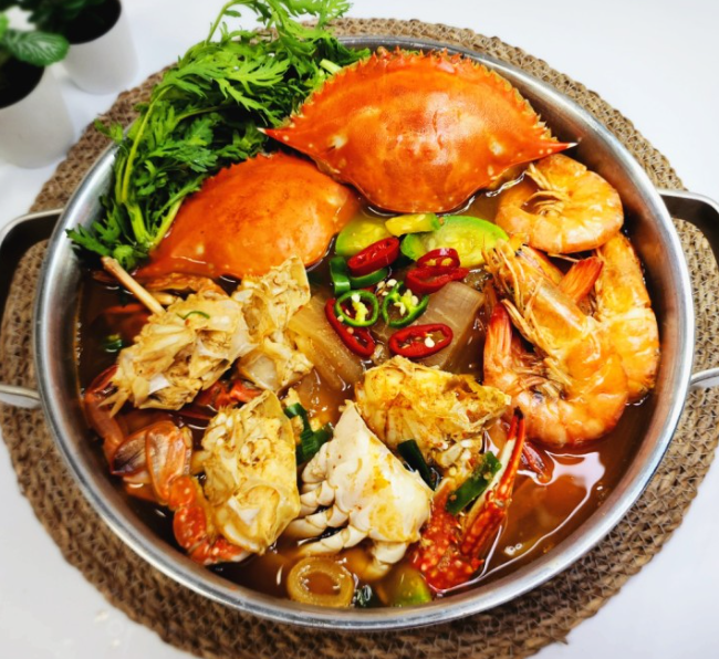 - 꽃게부터 바닥에 모양을 내서 담고 가운데에 라면을 부어주면 꽃게라면 데코까지 완성.