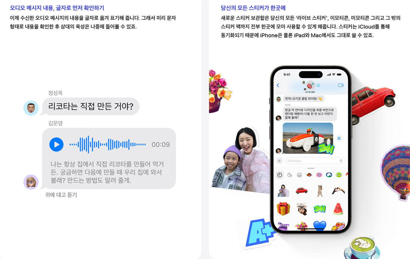 - 오디오의 메시지 내용을 글자로 먼저 확인가능.