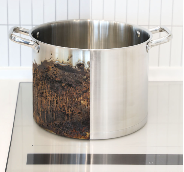 과도한 조리로 냄비 밑이 까맣게 타버린 경험이 한 번쯤은 누구나 가지고 있을 것입니다. 탄 부분을 청소하기 위해 철 수세미로 박박 문지르며 엄청난 시간과 힘을 들었을 것입니다. 하지만, 무리한 힘을 주며 바닥을 벗겨내는 것은 냄비의 탄 부분뿐만 아니라 코팅까지 벗겨서 손상이 가기 마련입니다.