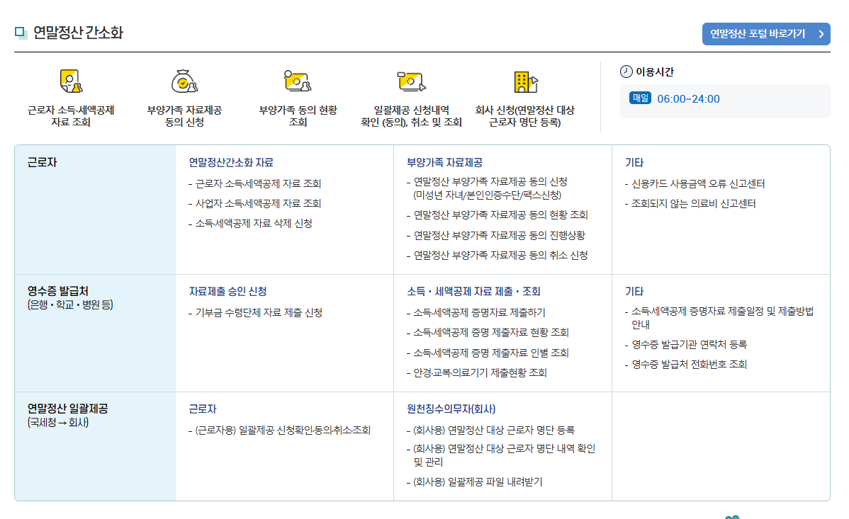 먼저, 2024년 연말정산 기간(예정)에 대해서 간단하게 표를 통하여 알려드리겠습니다.