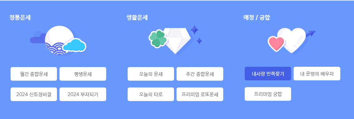 한국에서는 정월대보름(설날)을 중심으로 새해를 기리는데 이대에도 운세를 점치는 전통이 있습니다. 특히, 미래를 예측하는데 동물띠, 생년월일, 특정 행사의 결과 등이 고려되어 운세를 결정하는 경우가 많습니다.