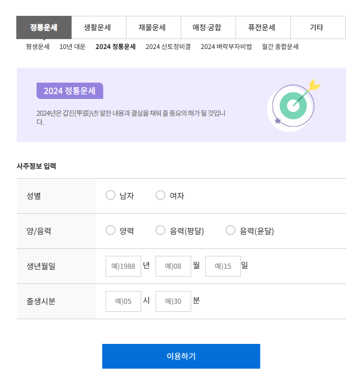 2024년 '청룡의 해'는 100년에 한 번 찾아오는 열정과 행운의 해라고 불립니다. 청룡은 예로부터 상서로운 기운을 몰고 왔으며 좋은 일들을 가지고 오는 특별한 존재로 인식이 되어왔습니다. 청룡은 목표달성, 사업운 향상과 가족화합과 재물에 대한 운 등 이로운 일을 몰고 오며 용문의 역경 극복으로 성광과 번영으로 말하곤 했습니다. 새해가 시작되면서 2024 신년운세 무료로 보시려는 분들이 많습니다. 아래를 참고하시면 2024 청룡의 해 신년운세를 무료로 보실 수 있습니다.