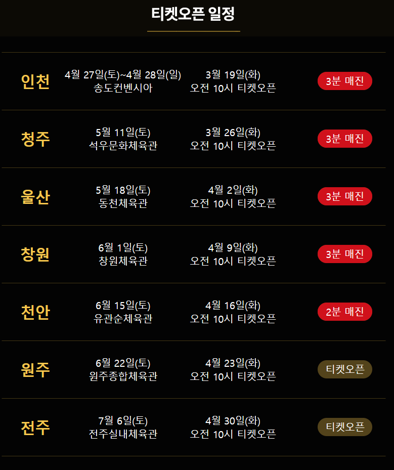 - 전주: 2024.07.06(토) 전주실내체육관