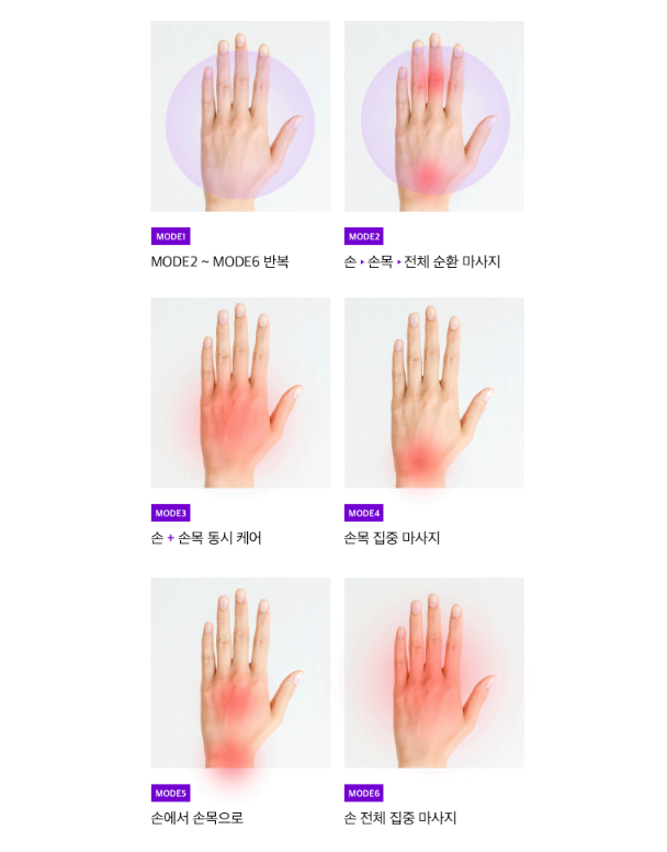 - 모드 2: 손-> 손목-> 전체 순환 마사지