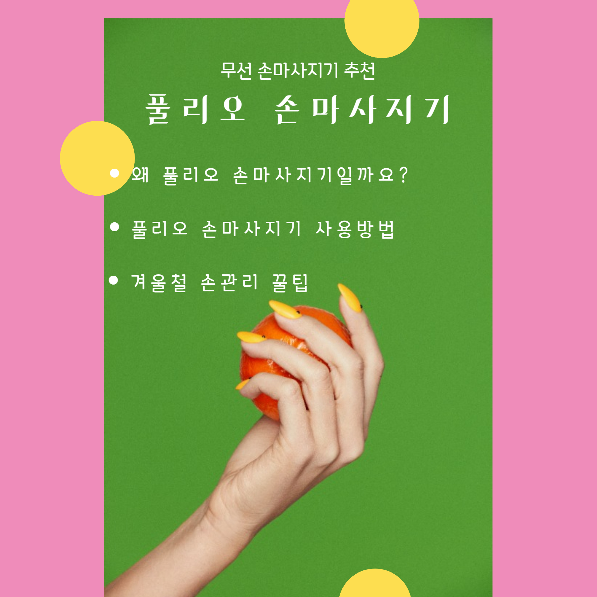 - 준비물: 풀리오 손마사지기, 비닐장갑, 핸드크림