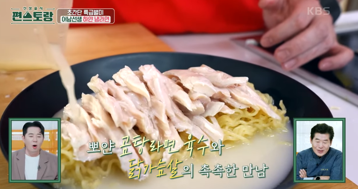 날씨가 더워지면서 시원한 음식이 생각나는 요즘이죠? 편스토랑 류수영 레시피 중에서 류수영 냉라면 레시피를 소개해드리려고 합니다. 편스토랑 류수영 냉라면은 기존 빨간 라면과 다르게 사리곰탕면 수프 국물에 식초를 추가해서 만드는 하얀 국물에 초간단 라면요리이면서 닭가슴살을 올려 초계국수 느낌으로 만들어 맛도 비주얼도 영양까지 모두 챙긴 초간단 어남선생 냉라면 요리입니다. 10분 안쪽으로 만들어지는 초간단 초계국수로 더운 여름 입맛을 살리기에 좋은 음식입니다.