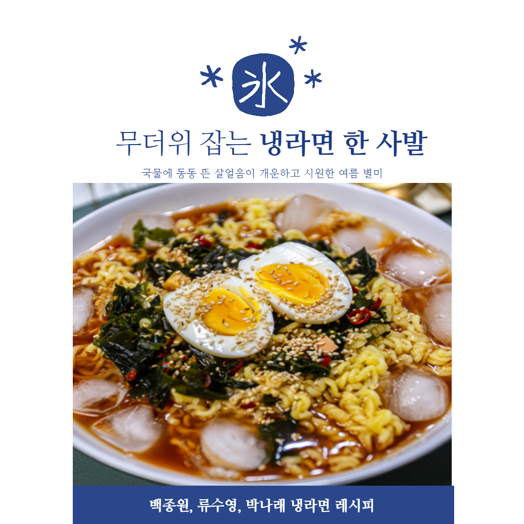 점점 더워지는 여름이 다가오면서 시원한 음식 생각이 절로 나시죠? 유독 이번 여름은 더 더울 것으로 예상이 되는데요. 무더운 여름에 생각나는 시원한 음식, 여름별미음식 냉라면 레시피에 대해서 소개해드리려고 합니다. 같은 메뉴라도 누가 만드냐에 따라서 맛이 다르잖아요? 백종원, 류수영, 박나래의 냉라면 레시피 시작하도록 하겠습니다.