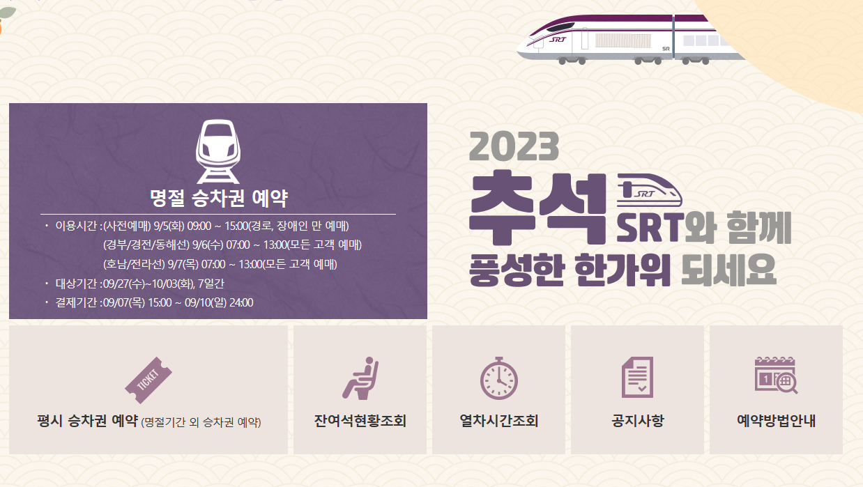 - SRT 추석연휴 승차권 예매